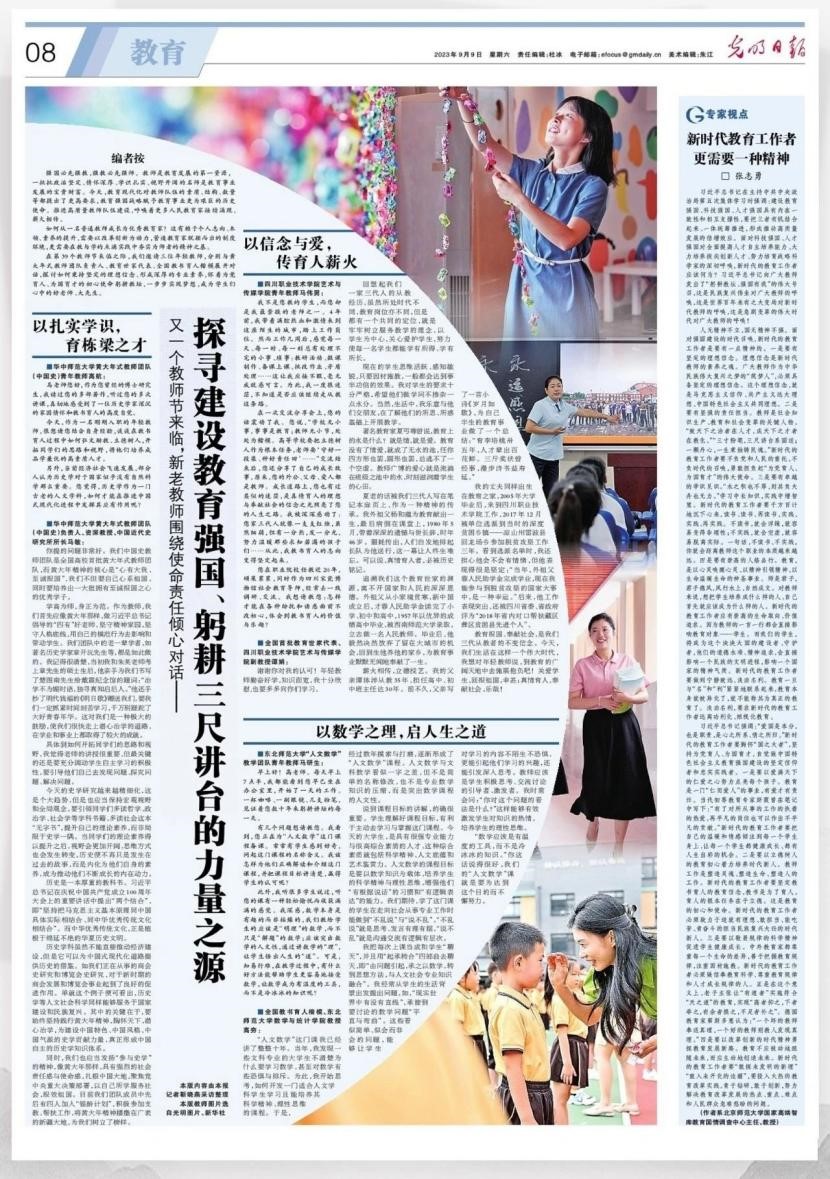 9月9日,《光明日报》以“以数学之理,启人生之道”为题,以我校年轻教师与全国教书育人楷模、数学与统计学院高夯教授对话的形式,探寻建设教育强国、躬耕三尺讲台的力量之源,展现了新老教师间初心传承、共担使命的大爱情怀。 以数学之理,启人生之道久久久久国产成人精品亚洲综合_亚洲精品国产A久久久久久_精品亚洲日韩国产精品一区二区三区_AV无码久久无码_国产精品国产亚洲精品看不卡_午夜亚洲精品国产乱码久久久人妻_久久久99无码精品一区二区三区_欧美日韩精品国产精品一区二区三区高清免费“人文数学”教学团队青年教师马研生: 早上好!高老师。每天早上7点半,我都能看到您早已坐在办公室里,开始了一天的工作。一杯咖啡、一副眼镜、几支粉...