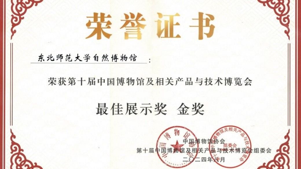 近日,第十届“中国博物馆及相关产品与技术博览会”在内蒙古呼和浩特市举办。我校自然博物馆在394家博物馆中脱颖而出,荣获由中国博物馆协会、第十届中国博物馆及相关产品与技术博览会组委会评选出的最佳展示奖——金奖。 我校自然博物馆展位位于敕勒川国际会展中心 2 号馆,推出了蝴蝶标本、金龟子标本、植物围巾等特色文创产品,全景展示了近年来在“自然教育、科学教育、劳动教育”的探索实践,展位得到了各界同行和观众的认可,...
