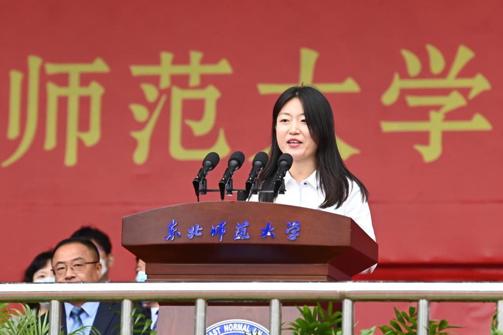 典礼上,教师代表、环境学院院长周丹丹教授,在校生代表、政法学院2021级博士研究生赵忠璐,新生代表、化学学院2022级本科生柳子旋,留学生代表、心理学院2022级硕士研究生速不台分别作了发言。