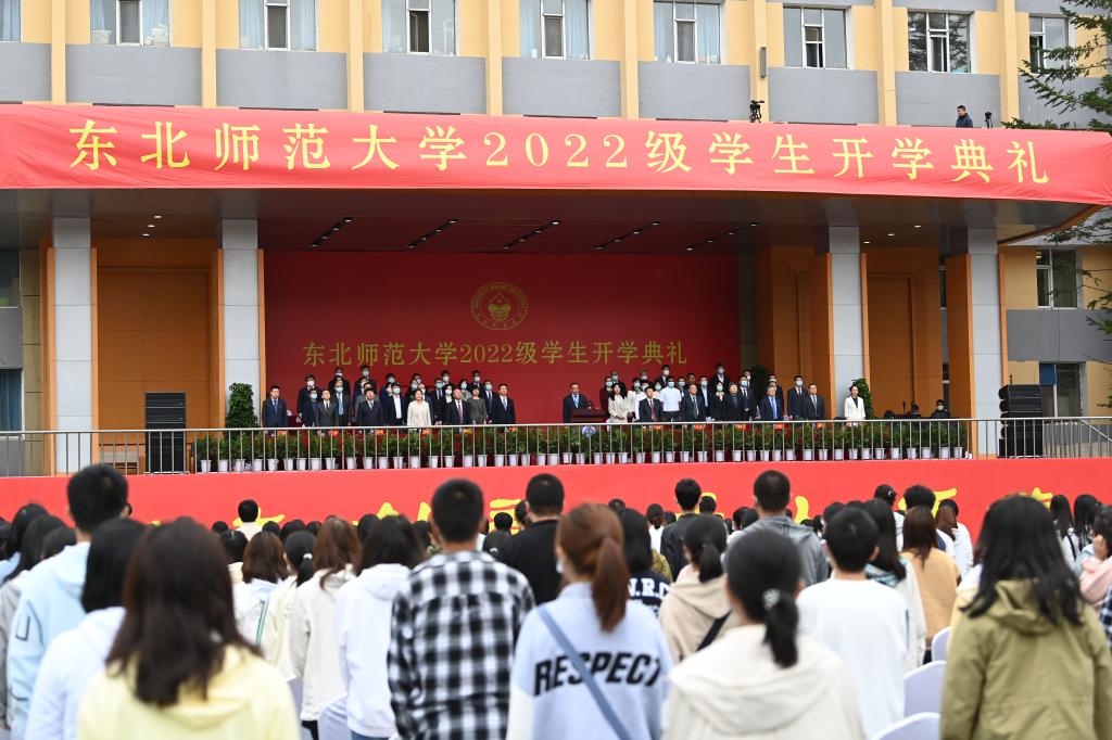 庄严肃穆的升旗仪式后,刘益春首先致辞。他代表学校对2022级新生的到来表示衷心的祝贺和热烈的欢迎。他谈到,东北师大是一所教育图强、育人兴邦的神圣学府。76年来,一代代东师人秉持“勤奋创新、为人师表”的校训,孜孜求索、奋进担当,为国家富强、民族复兴作出了重要贡献。刘益春说,强师报国,是全体东师人的精神底色。作为中国共产党在东北创办的第一所综合性大学,学校始终坚持“以党和国家的需要作为办学选择”。无论时代如何变迁,东师人才培养的使命没有变,强师报国的责任担当没有变。同学们要心怀国之大者,笃行奋进,光大东师人的报国精神。他指出,求实创造,是新时代东师人的共同追求。如今的东北师大朝气蓬勃、快速发展。今年在国家新一轮“双一流”建设中,学校马克思主义理论、教育学、世界史、化学、统计学、材料科学与工程6个学科入选“一流建设学科”。面向未来,学校将在“尊重的教育、创造的教育”理念引领下,向着建设世界一流师范大学的目标不断迈进。