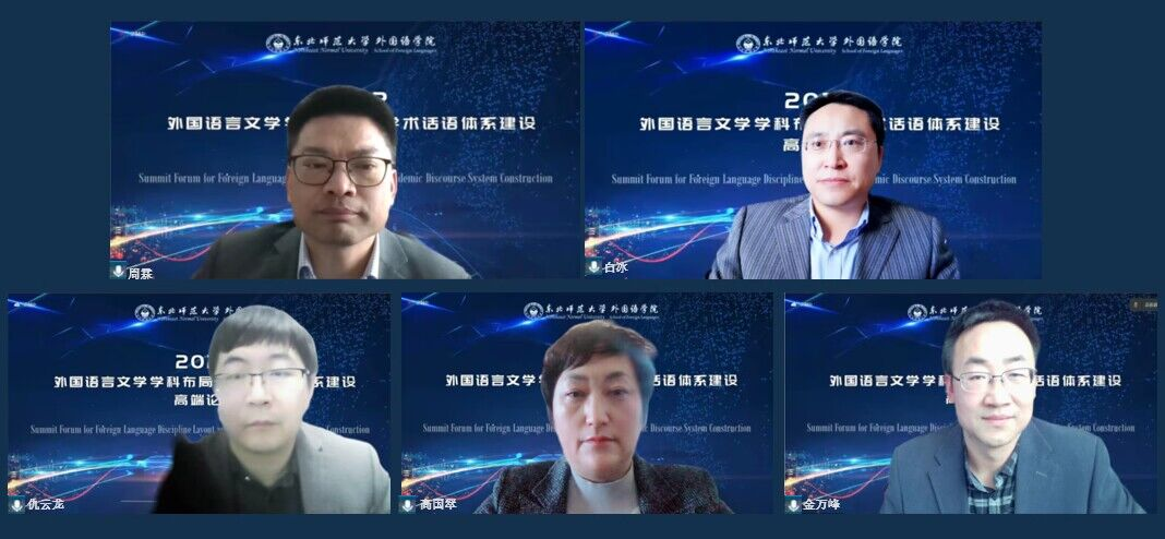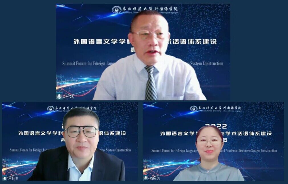 为推动构建外语教育自主知识体系和外语人才培养新格局,实现我校外语教育的高质量发展,外国语学院于12月4日举办了“外国语言文学学科布局与学术话语体系建设高端论坛”。我校党委副书记王延、发展规划处处长周霖、社会科学处处长白冰出席会议。王延和外国语学院周桂君院长为本次高端论坛致辞。开幕式由我校外国语学院党委书记商应美教授主持。本次高端论坛邀请了来自上海外国语大学、上海交通大学、南京大学、中国人民大学、黑龙江大学、信息工程大学、延边大学和我校八位国务院学位委员会学科评议组成员做主旨报告。